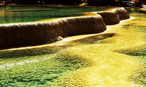 为一组早期边石坝和彩池形态,其特点是边石坝造型别致,色调丰富,该景点的边石坝有数10多个...详细信息 >>