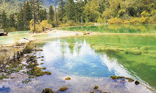 神仙池原为藏语“嫩恩桑措”的汉译,意为仙女沐浴的地方。景区特色集黄龙及九寨沟之美于一身,不仅有黄龙的奇,更有九寨沟的秀美。其中的青龙海和神蛙海,都与九寨沟的大小海子如出一辙:枯木静卧水底,青苔遍铺水岸,全没了钙化痕迹。神仙池海拔高度2000多米,相对落差也只有300多米,游客的可进入性很强。